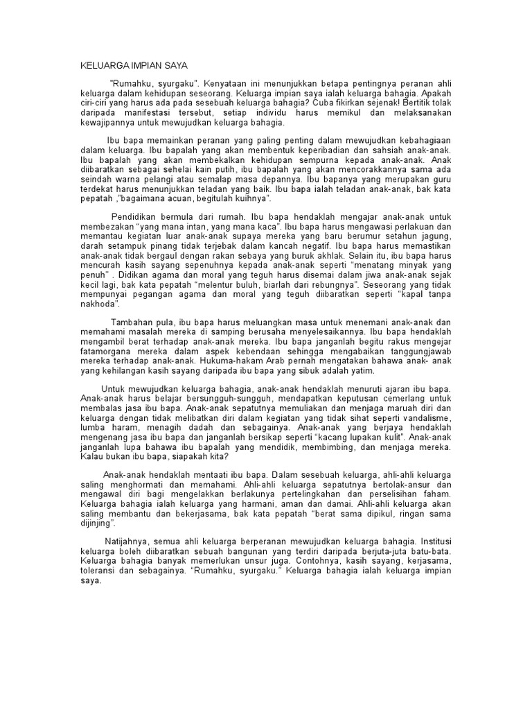 Contoh Karangan Keluarga Impian Saya